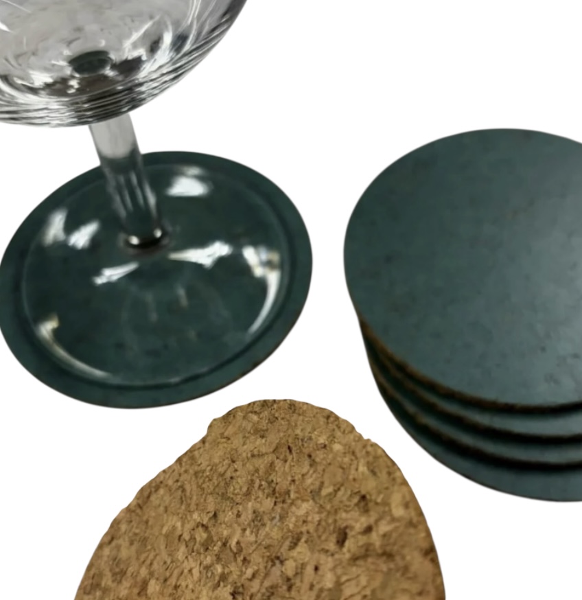 4 onderzetters van pers kurk uit Portugal in groen.