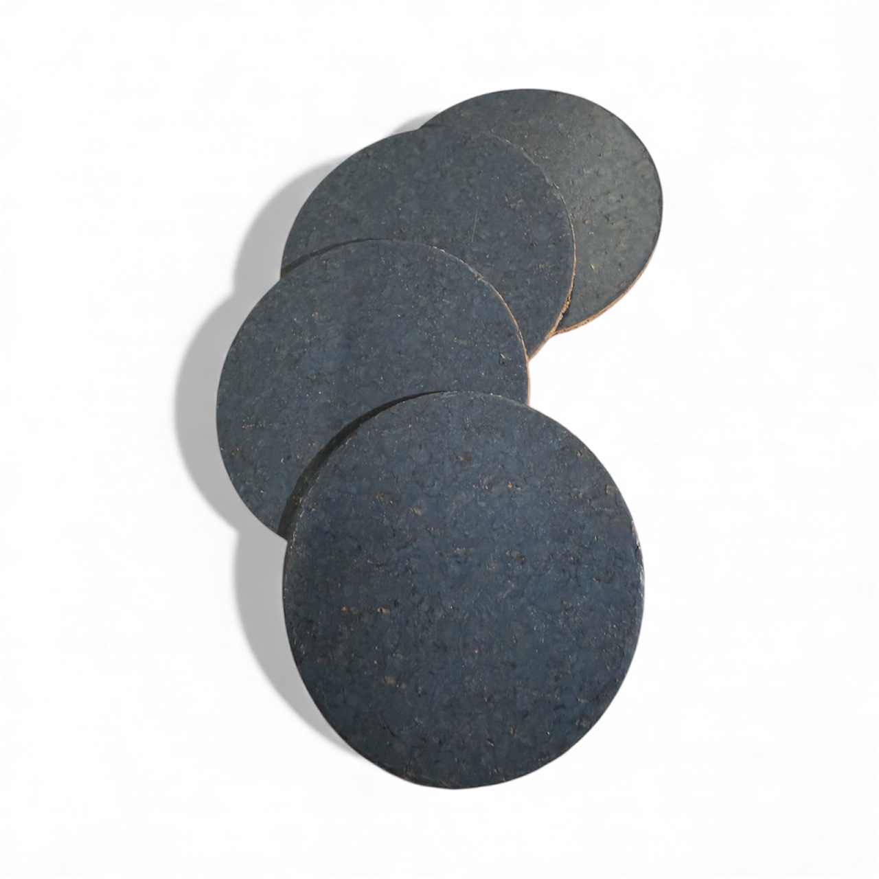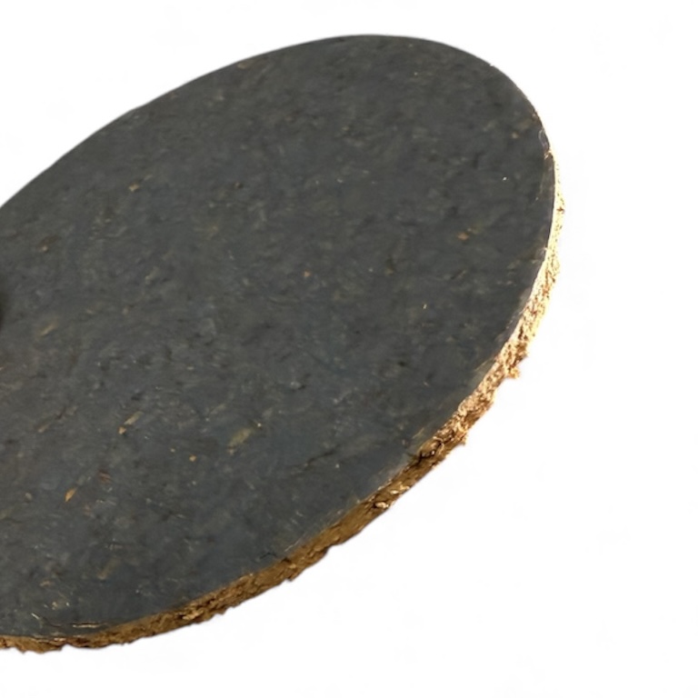 Onderzetters van perskurk die aan een zijde voorzien zijn van een verf laagje in de kleur rood.