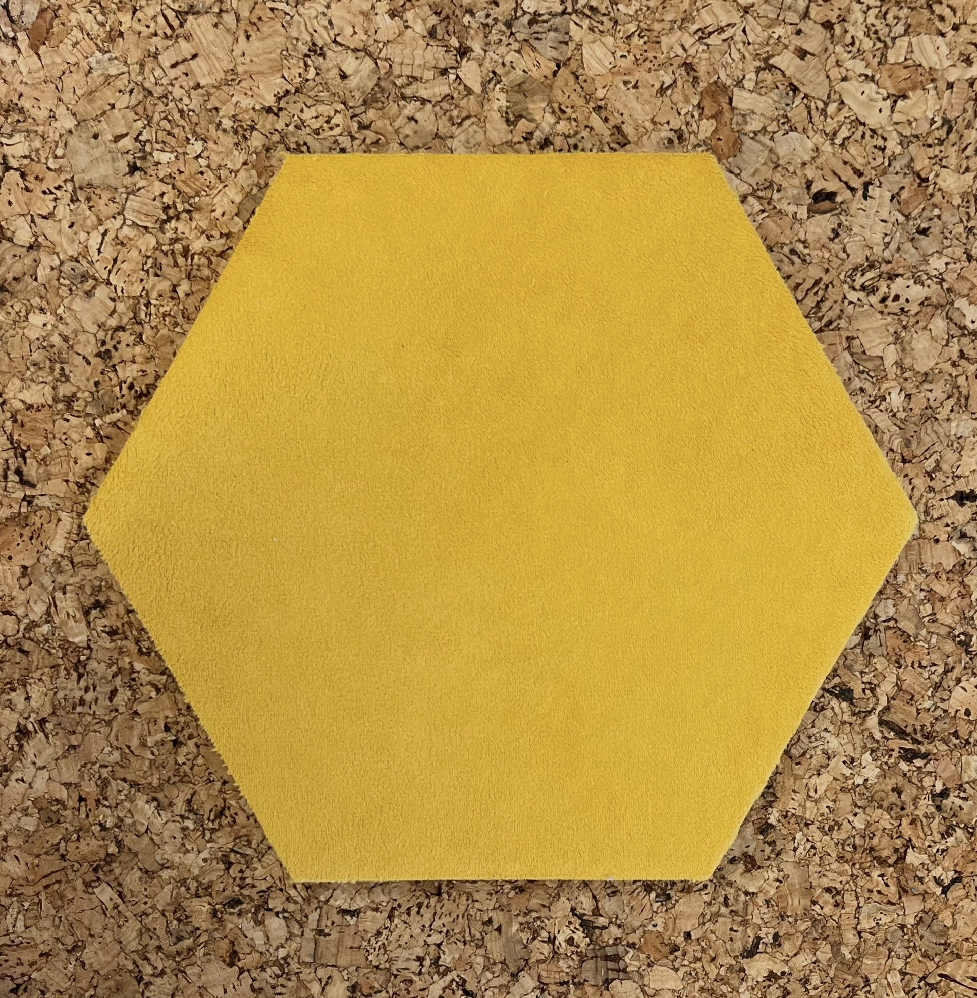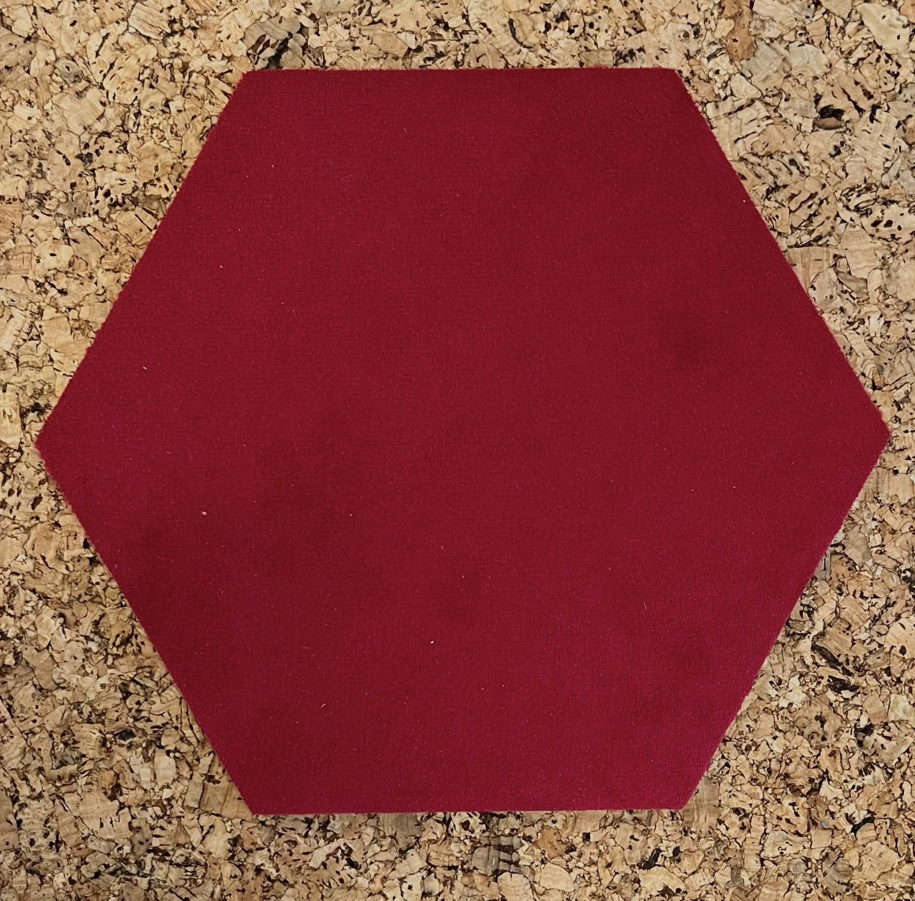 Afmeting per 6hoek : 20 cm x 20 cm en 7 mm dik, genoeg om er met pushpins – punaises in te prikken.