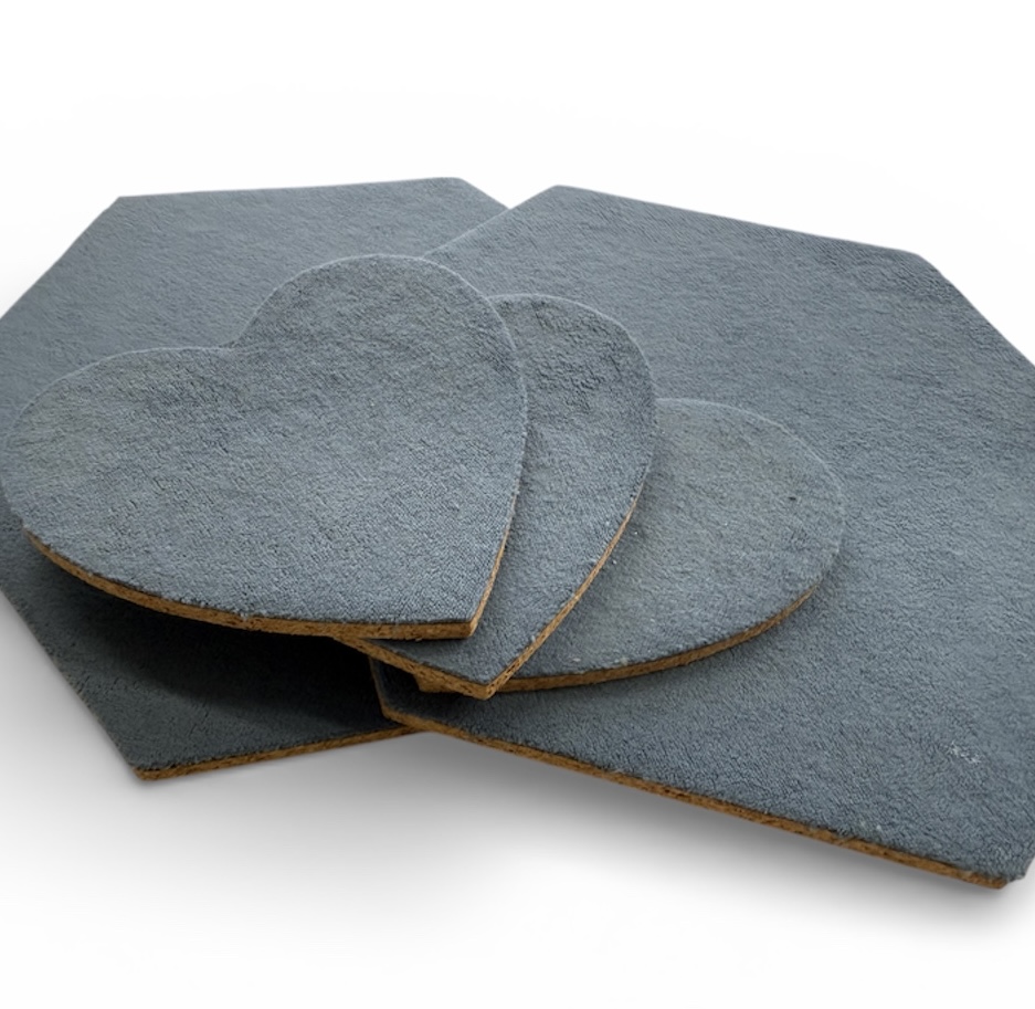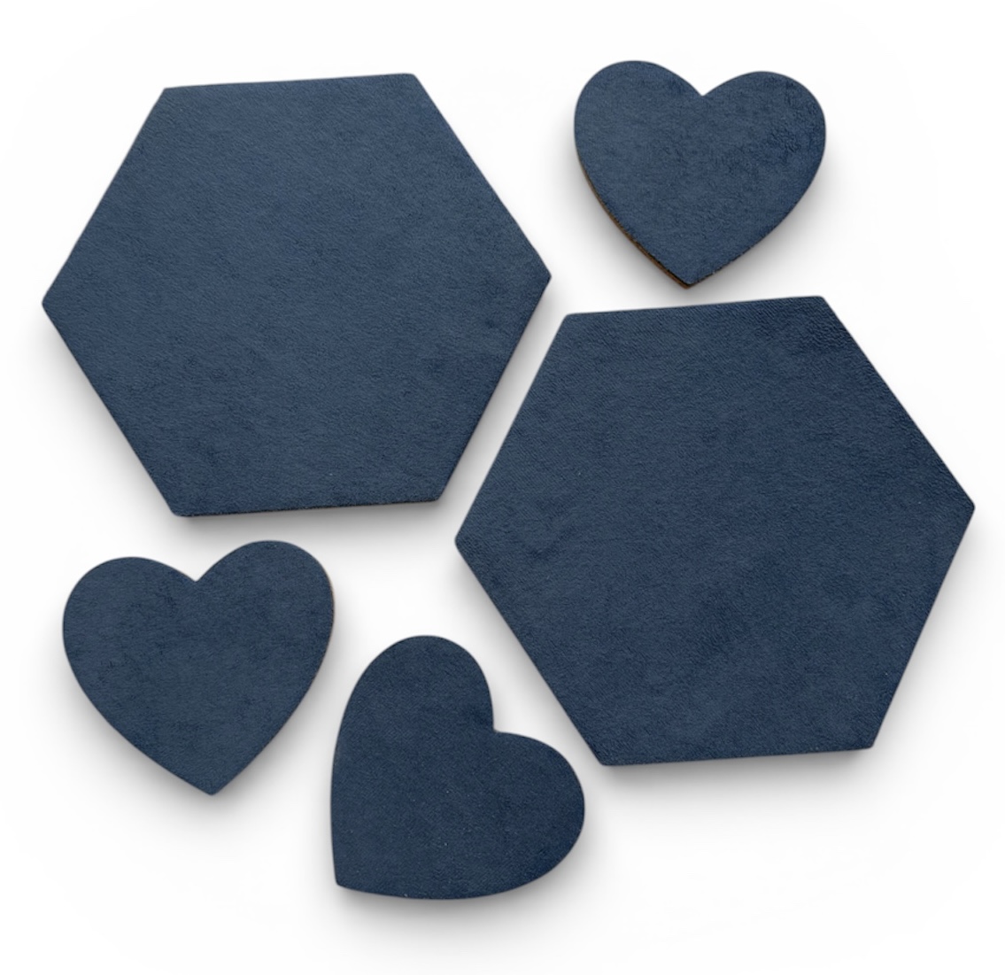 Deze 3 kleine Hartvormige prikbordjes en 2 grotere zeshoekjes staan erg leuk aan de wand en komen in de kleur blauw.