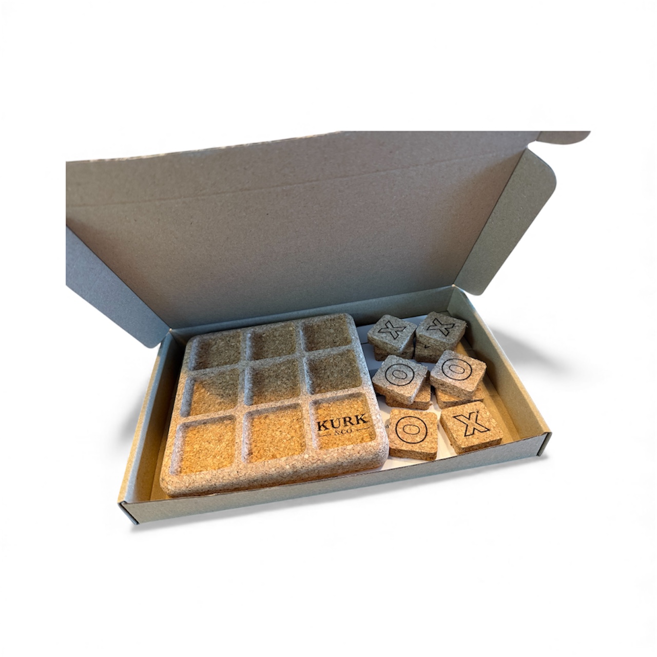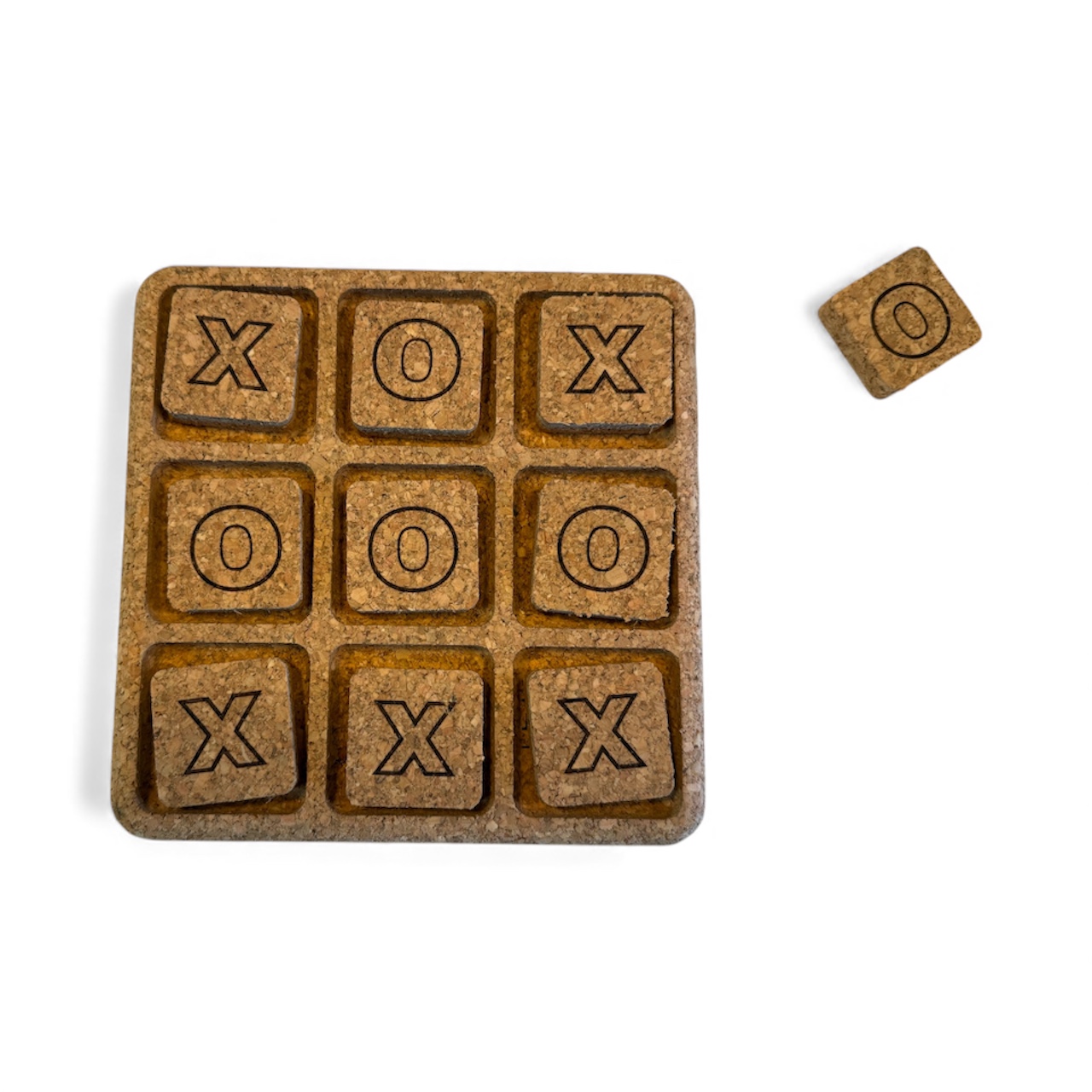 Het spel bestaat uit 10 stenen van perskurk met een X of een O erop.