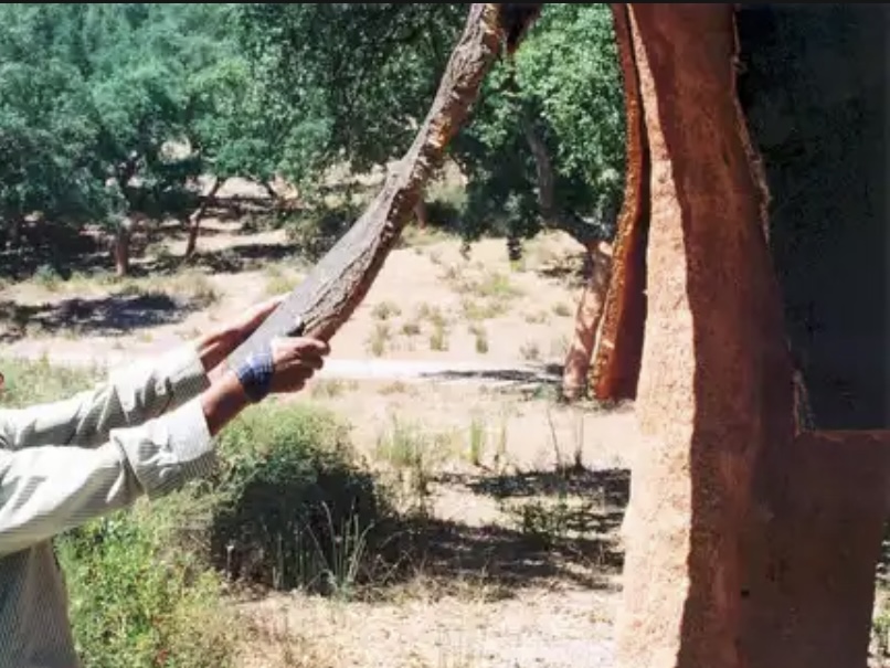 Een natuurkurk is rechtstreeks uit de bast van een kurkeik die in Portugal groeit.
