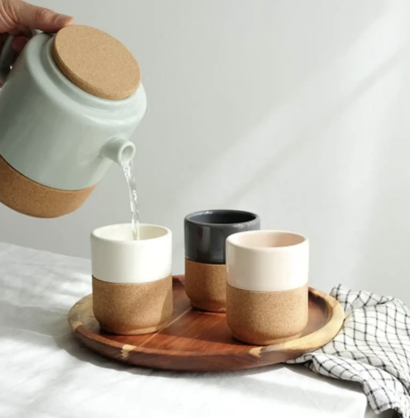Het Keramiek is geschikt voor de vaatwasser, het kurk kunt u met een vochtige doek afnemen.