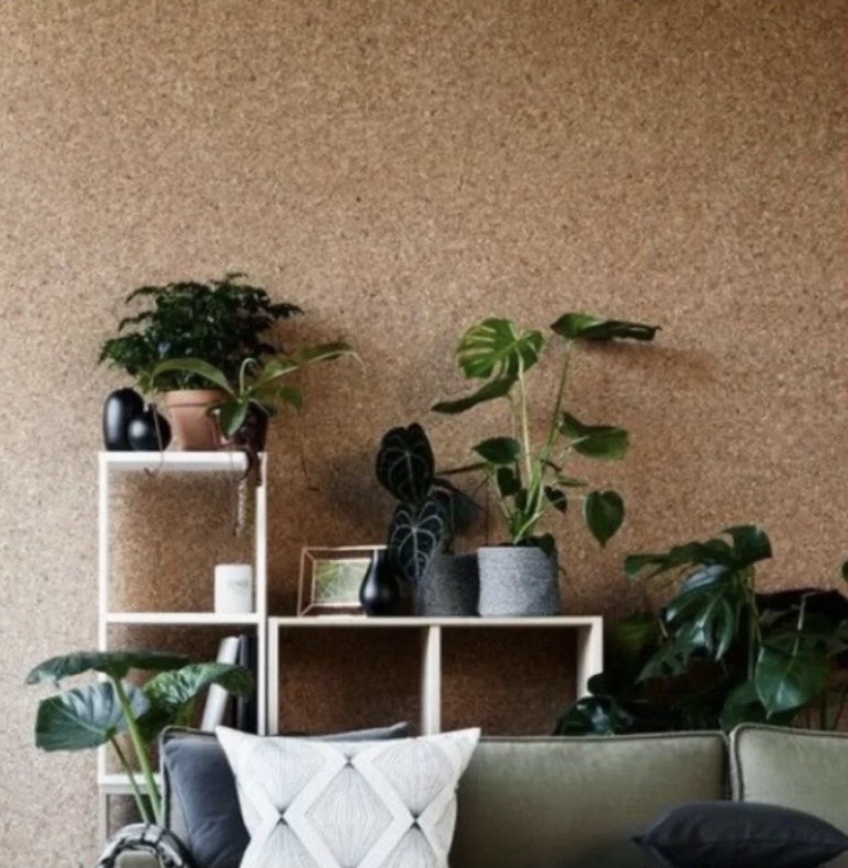 Deze kurk op rol op de muur met onze contactlijm. Het geeft een geweldige natuurlijke look.