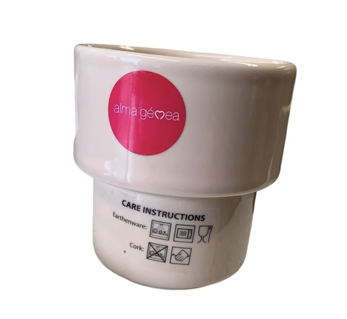 Het Keramiek is geschikt voor de vaatwasser, het kurk kunt u met een vochtige doek afnemen.
