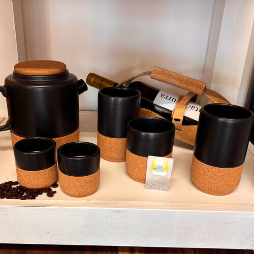 Het Keramiek is geschikt voor de vaatwasser, het kurk kunt u met een vochtige doek afnemen.